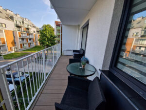 Na balkonie komplet mebli wypoczynkowych